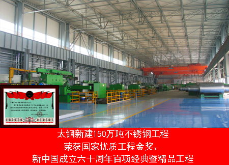 山西太鋼新建150萬噸不銹鋼工程,是山西鋼鐵集團有限公司“十五規劃”中的重點項目。獲得“國家優質工程金質獎”、“新中國成立六十周年百項經典暨精品工程”、改革開放三十五周年百項經典暨精品工程。