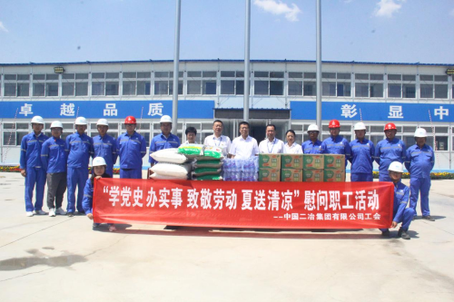炎炎烈日送清涼,關愛員工暖人心。7月13日,中國二冶啟動“致敬勞動 夏送清涼”慰問職工活動,公司黨委書記、董事長徐永鋒,總經(jīng)理、黨委副書記高文華等領導紛紛來到施工現(xiàn)場,將綠豆、白糖等防暑慰問品送到一線員工手中,為他們送去了親切問候和濃濃關懷。