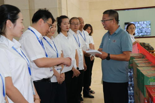 7月15日,包頭市總工會黨組成員、副主席王文海,包頭市建材工會主席翟海燕到中國二冶冶金分公司開展“致敬職工,夏送清涼”暑期高溫慰問活動,向戰高溫,斗酷暑,辛勤工作在一線的中國二冶職工送來防暑降溫用品,同時也送來市總工會的關心和關懷。公司黨委副書記、副董事長、工會主席白峰陪同慰問。