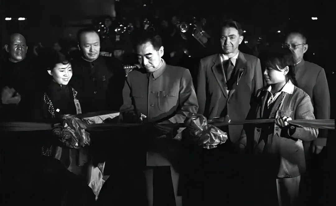 1959年10月15日,周恩來總理為包鋼一號(hào)高爐出鐵剪彩