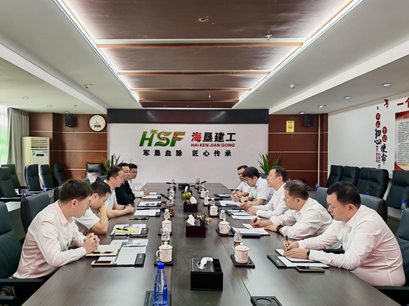 海南農(nóng)墾實(shí)業(yè)集團(tuán)有限公司副總經(jīng)理李榮濱,戰(zhàn)略企劃部負(fù)責(zé)人毛鳳鳴,成本合約部負(fù)責(zé)人陳景秋,設(shè)計(jì)研發(fā)部部長石鑫;中國二冶李曦鵬、郝海飛等陪同會(huì)見。